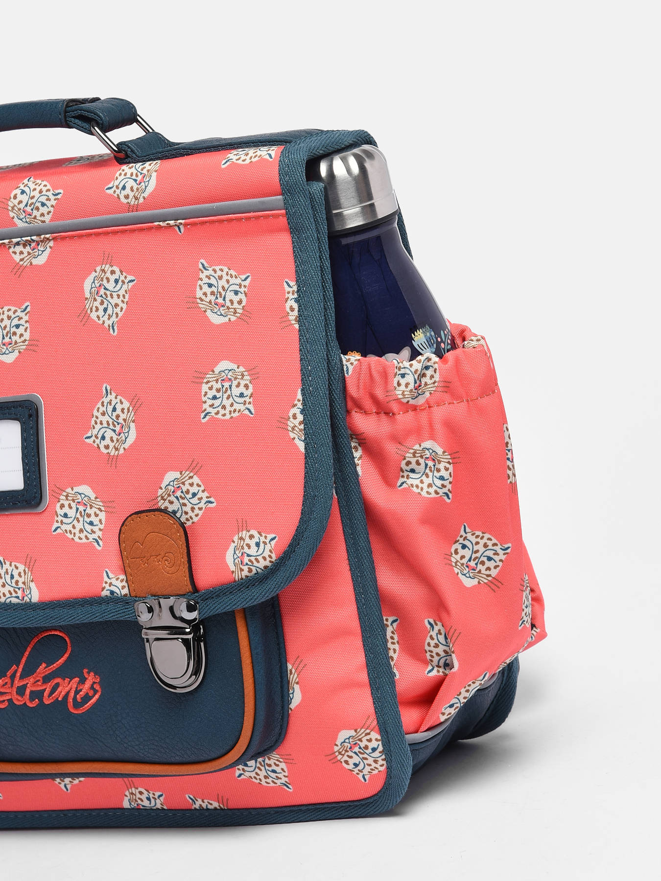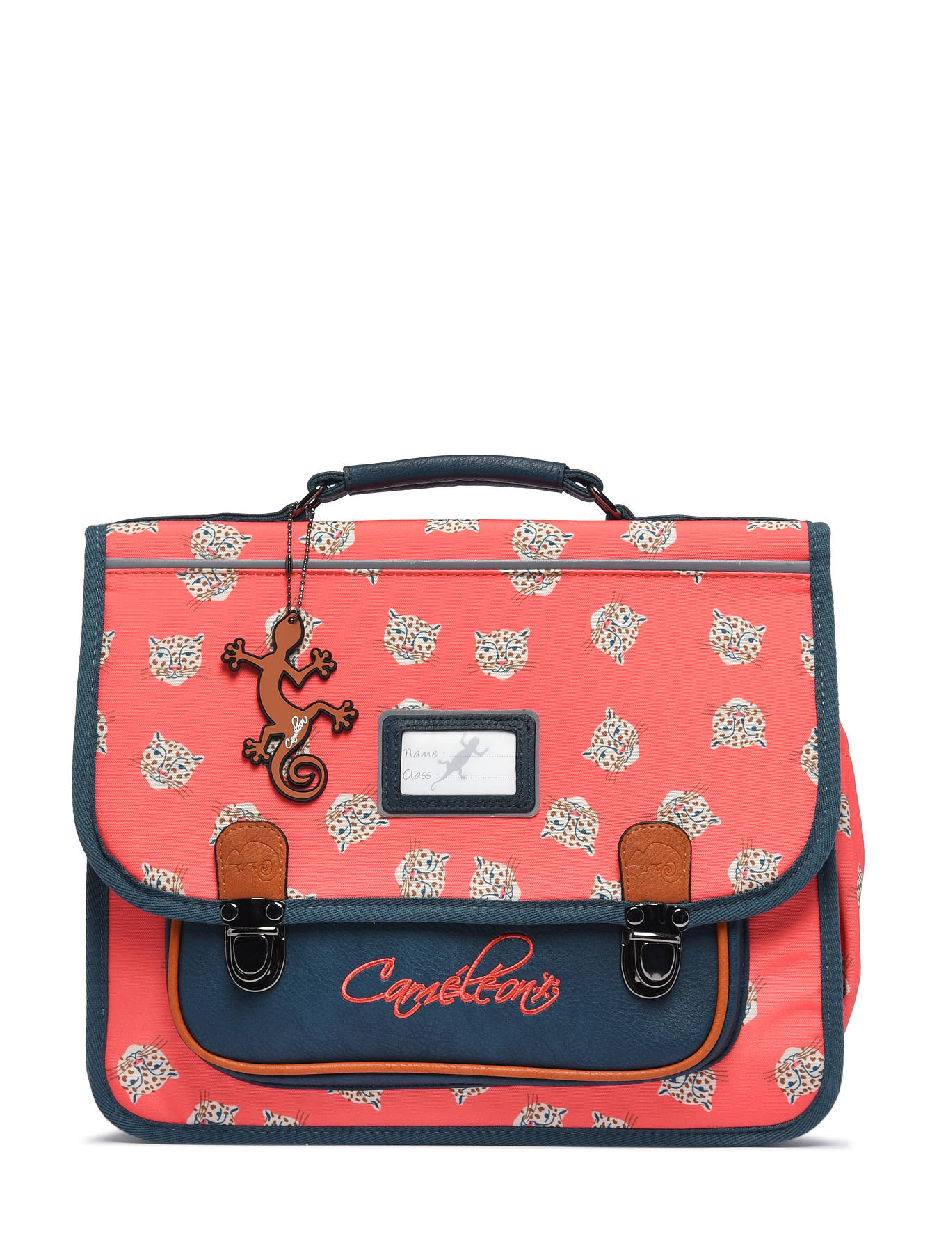 35 cm - 13 litres - 0.89 kg ~ Cartable enfant 35cm de la ligne Retro signé Caméléon, idéal pour la maternelle ou le CP. Ce cartable enfant se divise en 2 compartiments pouvant contenir les formats cahiers 21x29,7 cm et 24x32 cm. On retrouve à l'intérieur du cartable enfant un emplacement spécial règle et une poche zippée centrale. La poche avant simple est parfaite pour y glisser le goûter. Conçu pour le confort des enfants, le dos et les bretelles de ce cartable 35cm sont renforcés. Fabriqué à partir de polyester recyclé imperméable. Enfin, côté sécurité, des bandes réfléchissantes sont prévues autour du sac. Petit plus, un emplacement pour la gourde est situé sur le côté du cartable. Une règle est offerte dans ce cartable !
