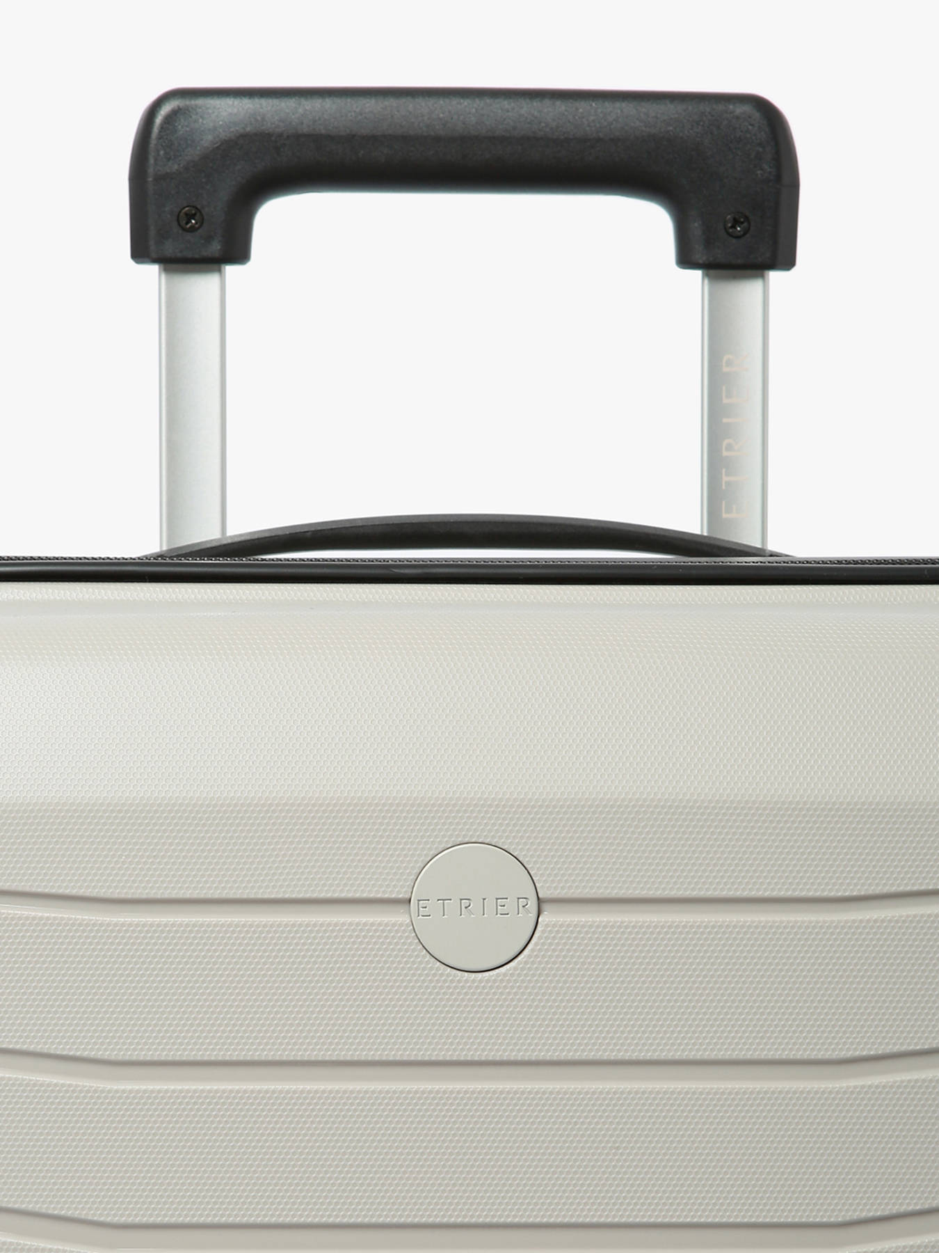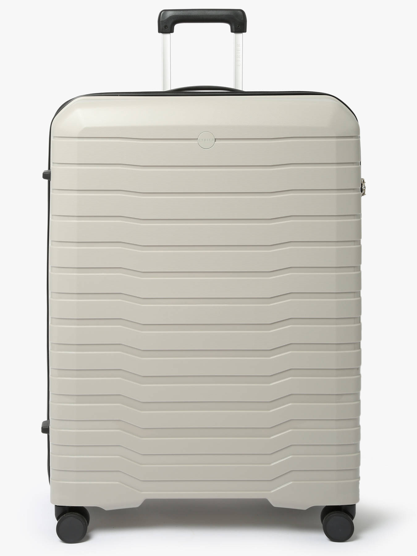 The Toronto suitcase, with its 115L capacity, is ideal for long stays combining style and practicality. Made from lightweight, resistant polypropylene, it features a zipper closure secured by a TSA lock and 4 twin wheels for perfect maneuverability. Its elegant design, marked by the tone-on-tone Etrier logo, and its special pocket for wet items make it a functional and refined choice for your travels.