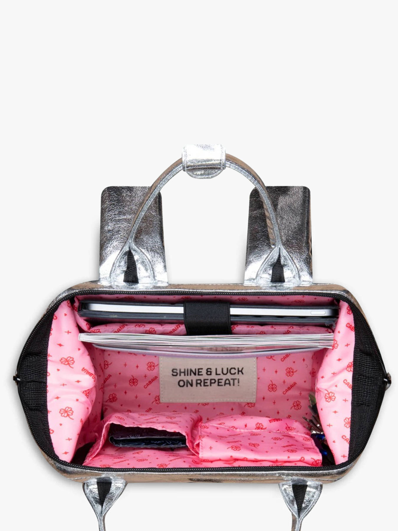 32 cm - 10 litres - 0.68 kg ~ Le sac à dos LUCKY STAR de CABAIA, fabriqué en polyester recyclé, est un modèle pratique et écologique pensé pour un usage quotidien. Sa fermeture zippée sécurise l’accès à vos affaires tandis que ses poches extérieures avant et dos permettent de garder vos indispensables à portée de main. Conçu pour un port confortable au dos, ce sac dispose d’un compartiment intérieur principal suffisamment spacieux pour accueillir un ordinateur jusqu’à 10,2 pouces, ainsi qu’un dossier A4, cahiers ou classeurs. Une poche simple et une poche spécifique pour téléphone complètent l’organisation interne, facilitant le rangement et l’accès rapide à vos objets. Léger et résistant, ce sac allie fonctionnalité, style urbain et engagement durable grâce à son matériau recyclé. Il est idéal pour les étudiants, professionnels ou voyageurs qui souhaitent conjuguer praticité et respect de l’environnement au quotidien.