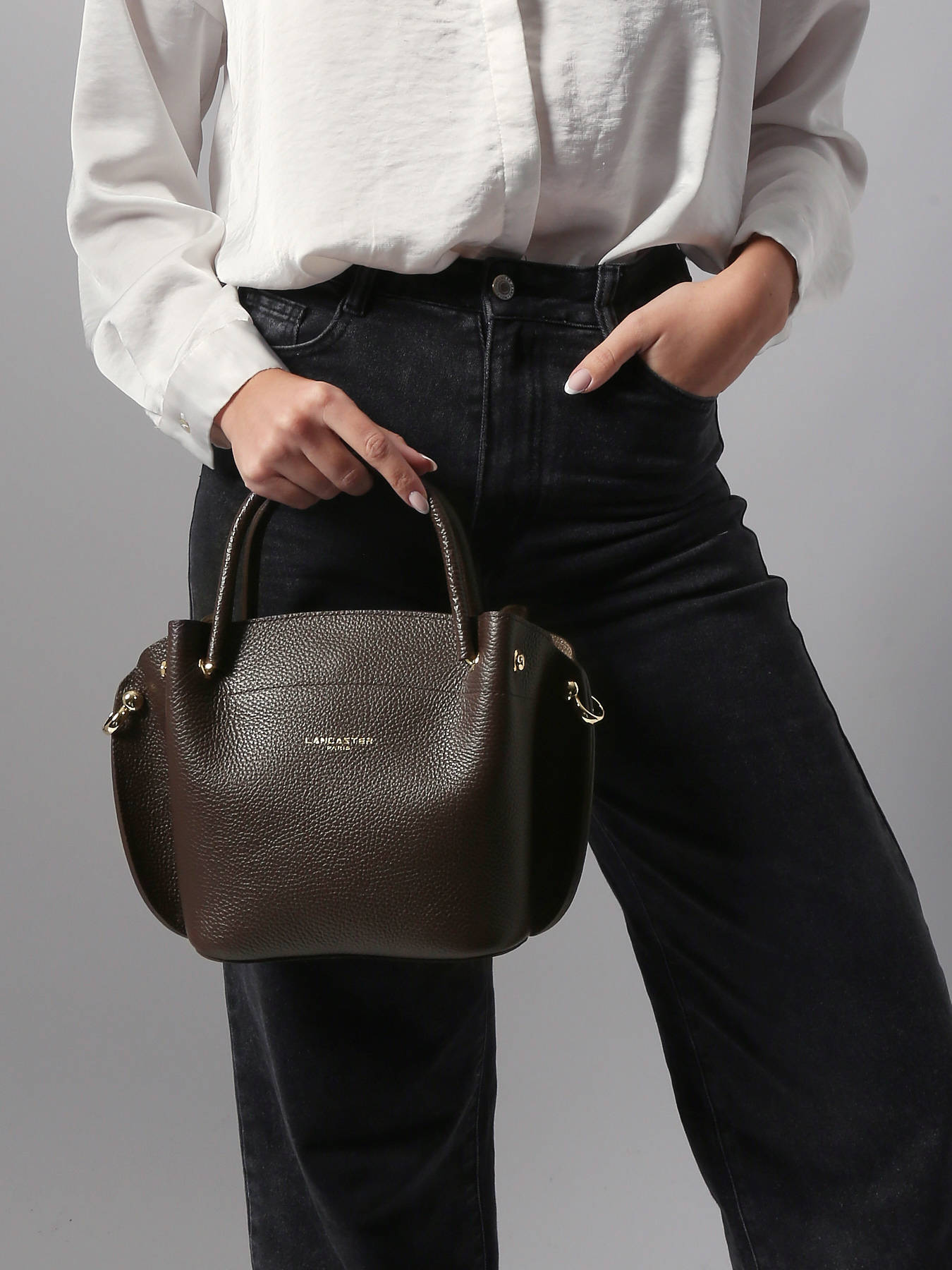 Cette saison, vous allez fondre pour ce joli sac à main issu de la collection Foulonne Double de chez Lancaster. La marque française de luxe vous propose un sac à main à la fois sobre, chic et élégant. Vous allez adorer sa forme originale ainsi que la qualité de son cuir de vachette grainé. Sur le devant, retrouvez le logo de la marque dans une écriture dorée. Sous la fermeture zippée de ce sac à main Lancaster, vous trouverez un espace de rangement de taille moyenne accompagné d'une poche éclair. Celle-ci est parfaite pour accueillir de petits objets comme des clés et les garder en sécurité. C'est certain, ce sac à main Foulonne Double signé Lancaster en fera craquer plus d'une. Portez-le à la main à l'aide des deux anses ou sur l'épaule grâce à la bandoulière amovible et associez-le à une tenue élégante pour une soirée entre copines.