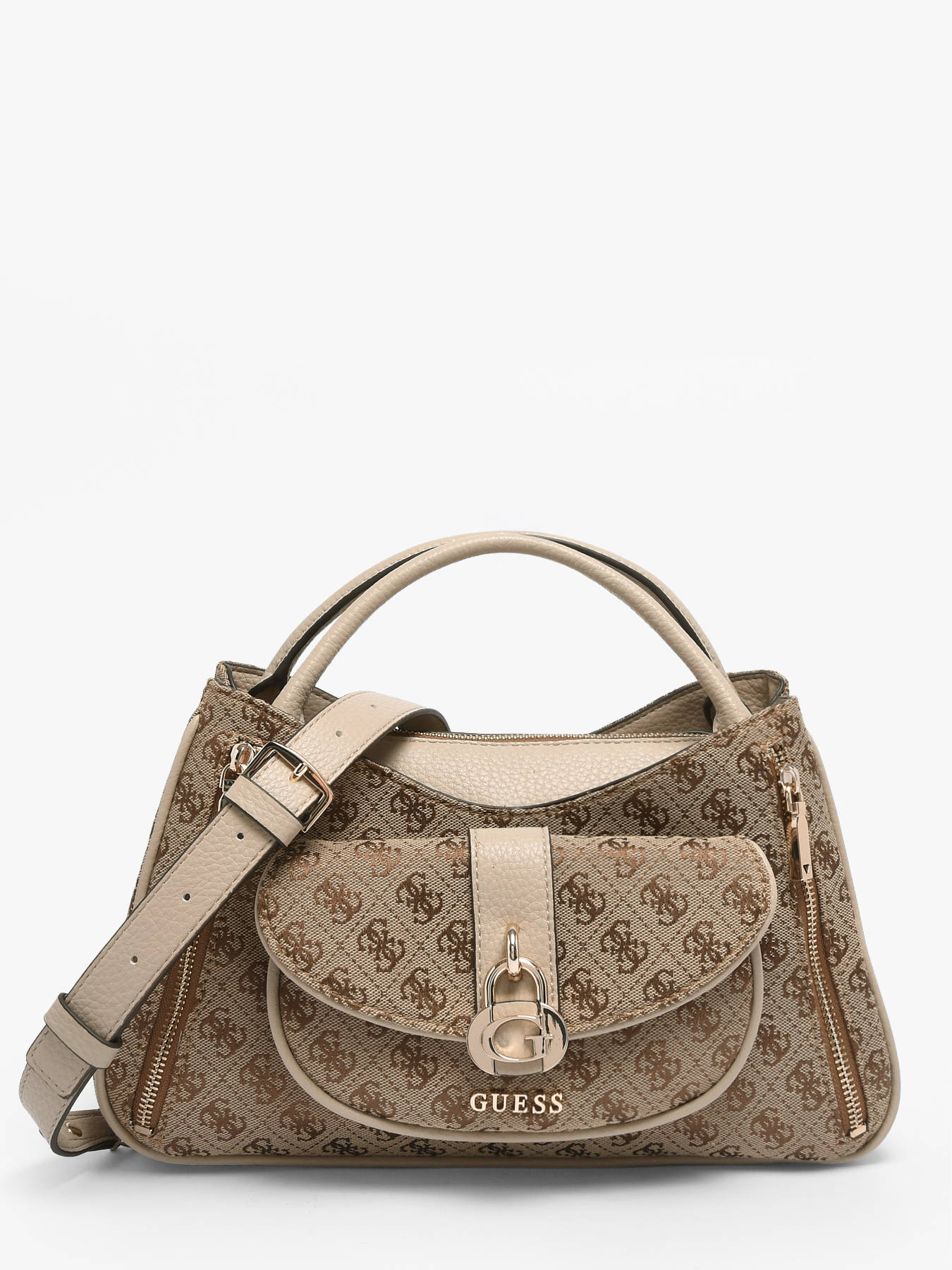Le sac porté main JESSA GUESS en polyester allie élégance contemporaine et fonctionnalité. Son extérieur comporte trois poches avant et une poche au dos, offrant un accès pratique à vos indispensables. La fermeture zippée assure la sécurité de vos affaires, tandis que l’intérieur est parfaitement organisé avec trois compartiments, deux poches simples et une poche zippée, permettant de ranger vos essentiels avec efficacité et style. La bandoulière réglable et amovible permet de le porter à la main ou en bandoulière selon vos envies, tandis que la hauteur de l’anse de 10 cm garantit un confort optimal. Compact et structuré, ce sac complète parfaitement un look urbain ou sophistiqué, apportant une touche chic et moderne à vos tenues. Chaque détail, des finitions soignées à la qualité du polyester, reflète le savoir-faire GUESS, faisant de ce modèle un accessoire pratique, élégant et tendance au quotidien.
