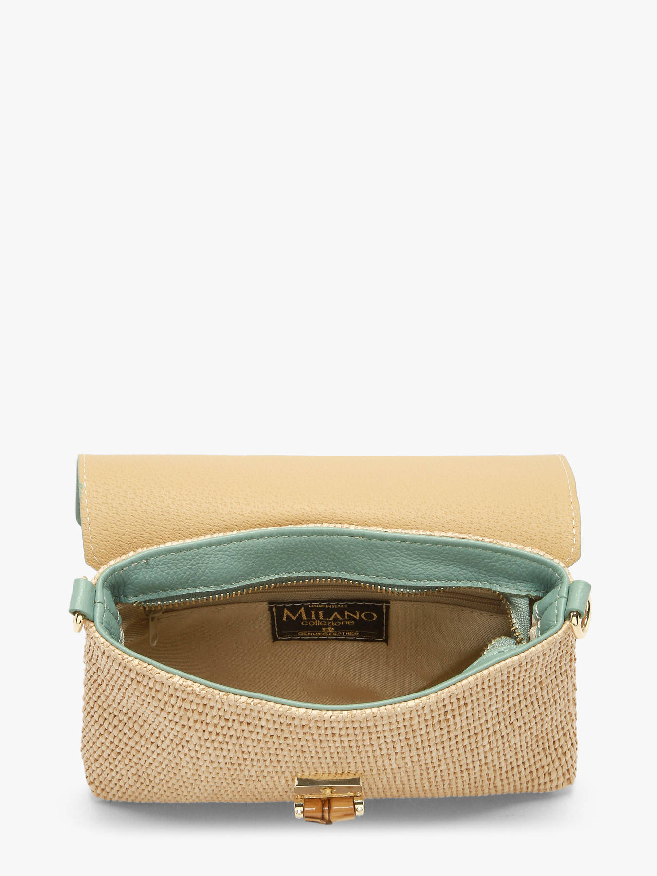 Le sac bandoulière CAPRI MILANO, en raphia garni cuir, allie élégance naturelle et fonctionnalité pour un usage quotidien. Son extérieur combine un rabat avec fermoir et une fermeture zippée, garantissant sécurité et praticité, tandis que la bandoulière réglable et amovible permet un porté confortable en bandoulière. À l’intérieur, un compartiment principal et une poche zippée offrent un espace organisé pour ranger téléphone, portefeuille ou petits accessoires, assurant accessibilité et ordre. Léger, raffiné et durable, ce sac CAPRI MILANO se distingue par la qualité de ses matériaux et son design chic, apportant une touche moderne et sophistiquée à toutes vos tenues. Idéal pour celles et ceux qui recherchent un sac pratique et élégant, il constitue un accessoire incontournable au quotidien.
