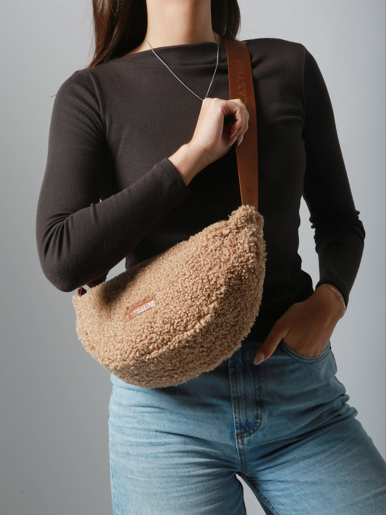 Sac bandoulière moumoute Lancaster, de la ligne Moumoute, à porter soit à l'épaule soit en bandoulière.