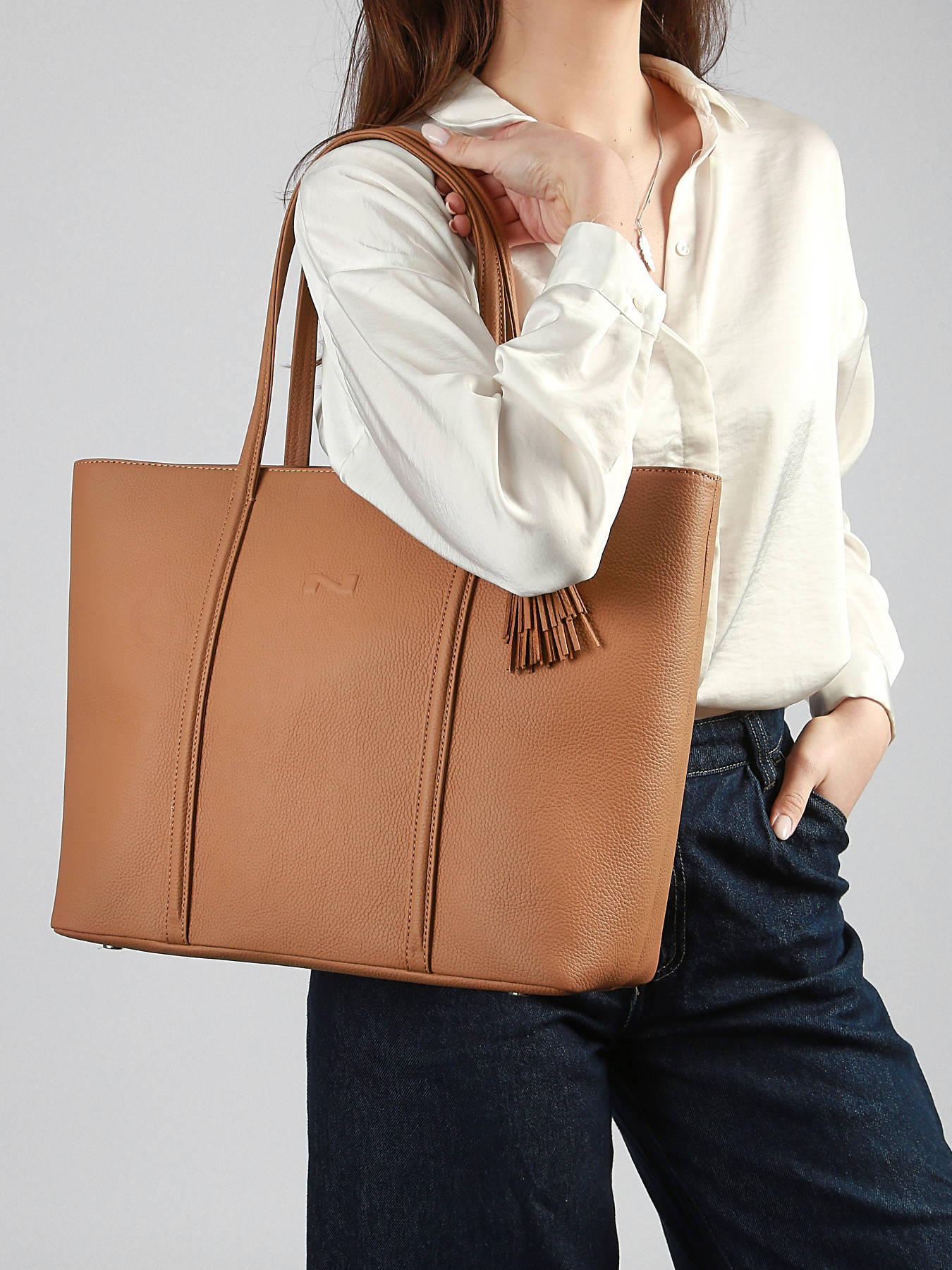 Le sac porté épaule Cabas par Nathan Baume deviendra vite votre compagnon de tous les jours. Grâce à son grand format, emportez avec vous tous vos essentiels de la journée, un ordinateur, une tablette, un foulard, un document format A4 et un petit goûter par exemple. Ce sac est composé de cuir d’une très belle qualité pour vous permettre de la garder le plus longtemps possible. Il dispose de 2 anses ornées d’un pompon, ainsi que d’une fermeture éclair pour son large compartiment, lui-même doté d’une séparation zippée, d’une poche zippée ainsi que de 2 poches simples. Ce sac chic et branché ne vous quittera plus.
