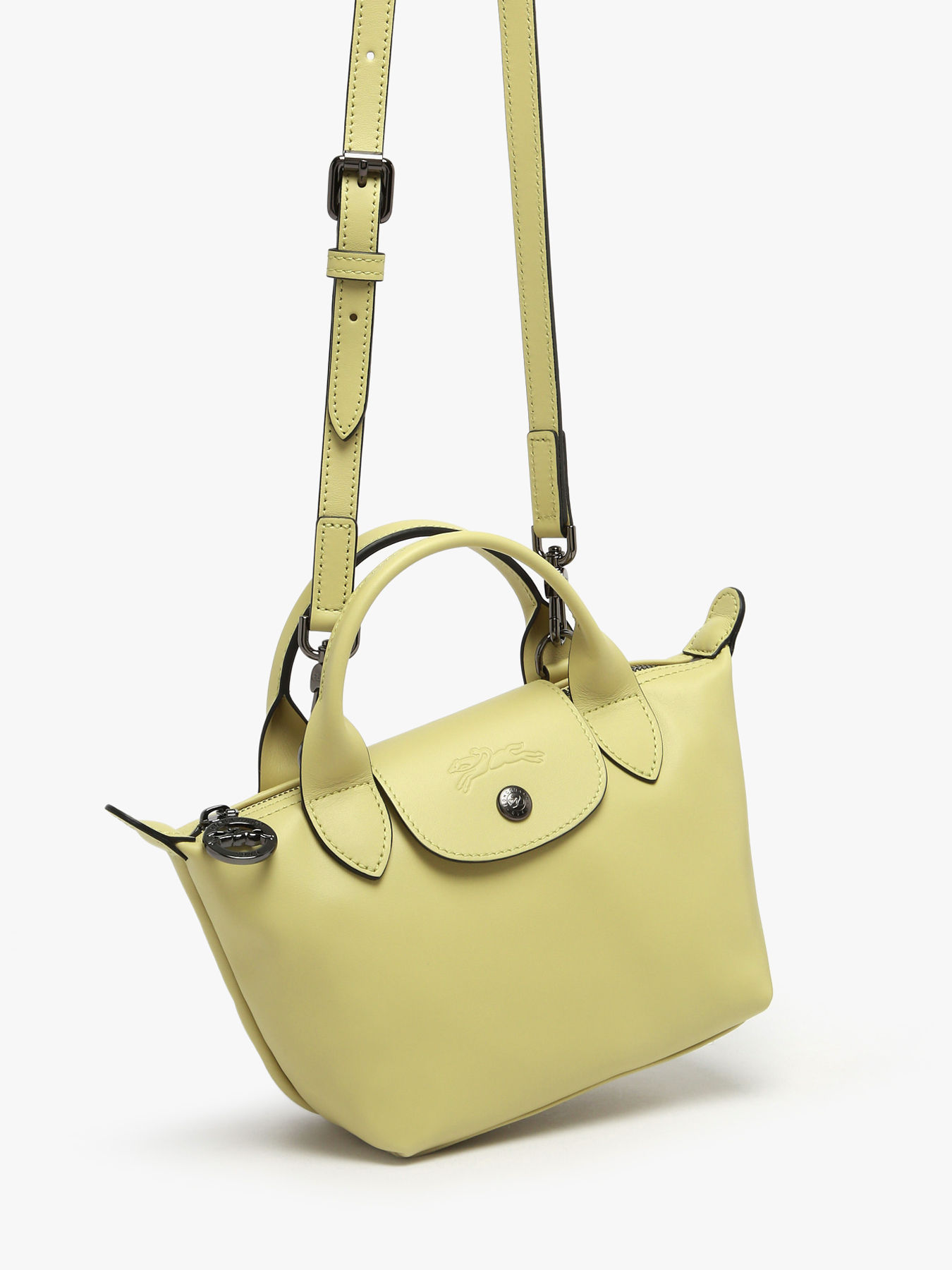 L’iconique Pliage Xtra de la marque Longchamp s’habille d’un cuir de vachette lisse à l’allure élégante et raffinée. Son cuir délicat ainsi que ses nouveaux détails design offrent une attitude moderne et assumée. Cette version XS est l'accessoire glamour idéal pour vous accompagner lors de vos soirées. Doté d'une bandoulière amovible et réglable, il peut se porter à la main, à l’épaule ou en travers.