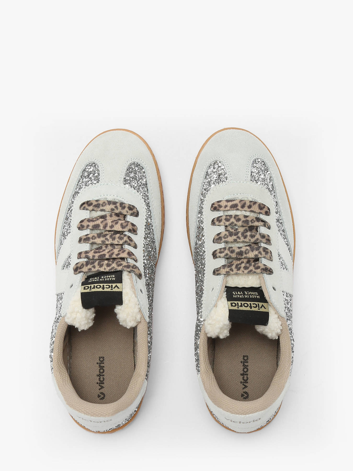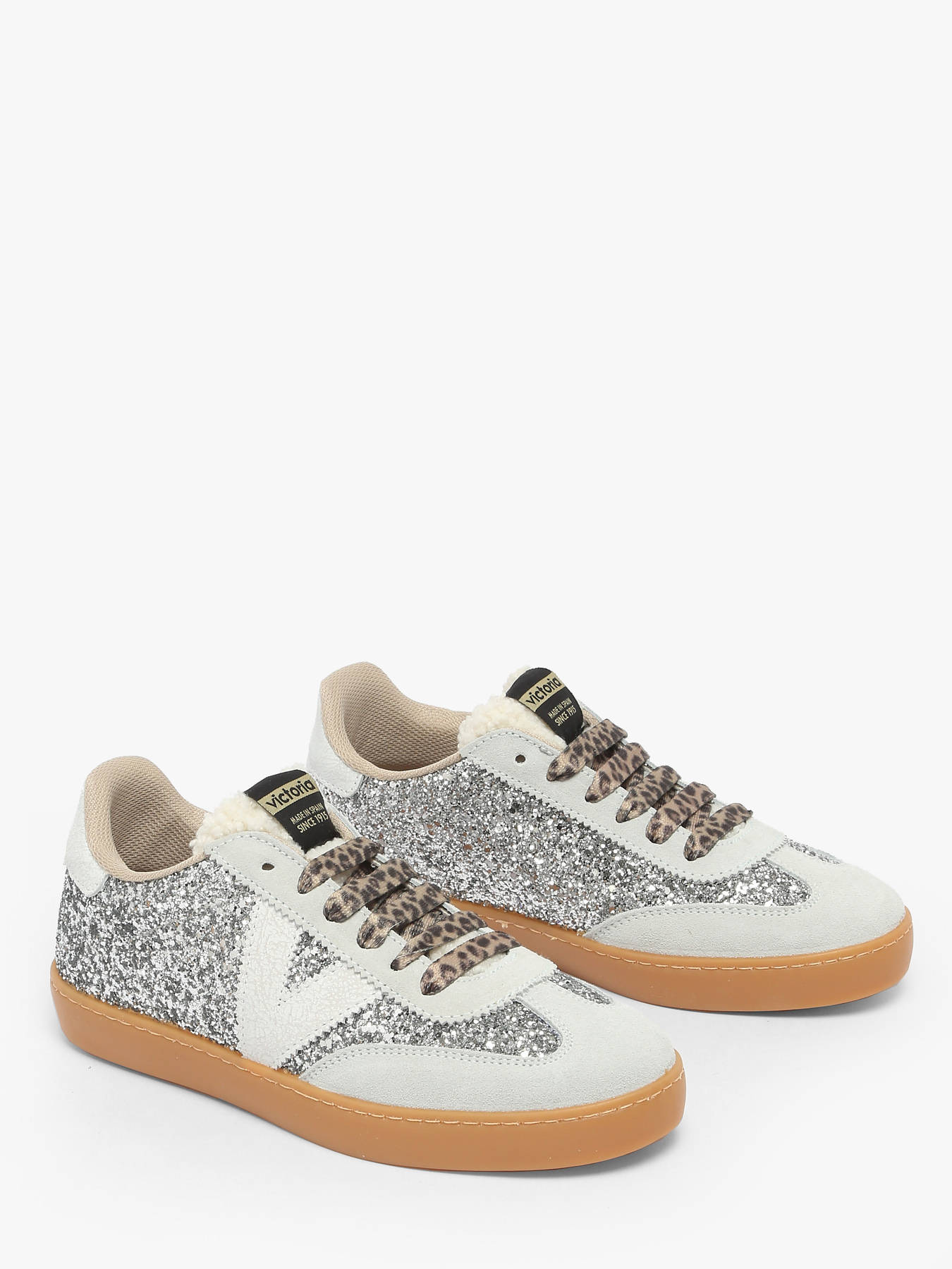 Les baskets Berlín Ciclista Paillettes & Imprimé Animal de Victoria allient style audacieux et confort moderne. Fabriquées en Espagne, elles se distinguent par leur finition glitter texturé, leurs empiècements en croûte de cuir et leur détail animal print à l’arrière. Leur silhouette cycliste revisitée, ornée d’une languette en fausse fourrure et d’une semelle translucide couleur caramel, leur confère une allure rétro et tendance. Dotées d’une semelle intérieure ergonomique fabriquée à partir de matériaux recyclés, elles assurent un confort optimal à chaque pas. Véritable concentré de style féminin, elles séduisent aussi par leur touche originale : une délicate odeur de fraise à l’ouverture de la boîte.