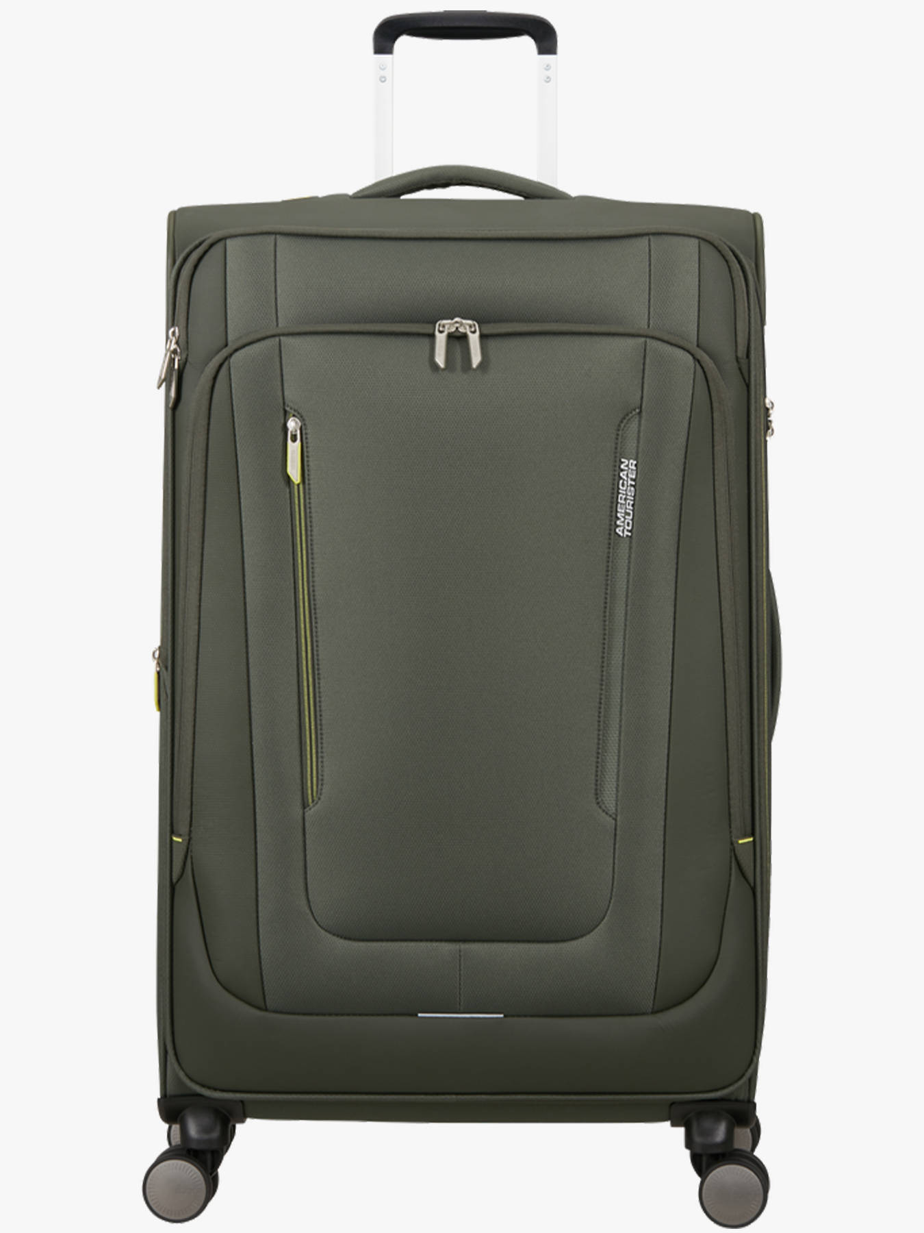 Prepare for extended trips with the AMERICAN TOURISTER WANDERLITE large-capacity soft suitcase. Made from recycled P.E.T, this eco-friendly 3.3 kg suitcase offers an expandable capacity from 108 to 123 L and dimensions of 79 x 48 x 31 cm (expandable to 34 cm), perfect for carrying clothes and accessories securely. Its four XL double wheels provide optimal maneuverability and smooth mobility, while the telescopic handle, top handle, and side handle ensure comfortable transport in all situations. The TSA combination lock protects your belongings, and two front pockets with reflective details add practicality and visibility. Inside, two compartments—including a lower section with straps—and two zippered pockets allow efficient organization of your items. Lightweight, durable, and spacious, this WANDERLITE soft suitcase combines comfort, security, and contemporary style for all your extended travels.
