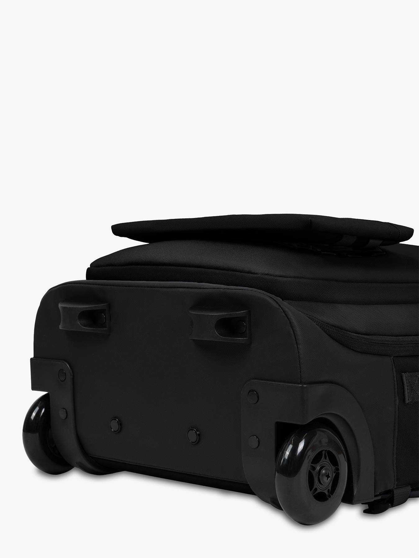 Équipée de bretelles intégrées, elle peut être portée sur le dos comme un sac à dos. Une housse de pluie pratique est incluse pour couvrir les roues et éviter les salissures en mode sac à dos. Elle dispose d’un compartiment accessible à l’avant pour ordinateur (compatible 14 pouces), ainsi que d’une poche extérieure pour une gourde.