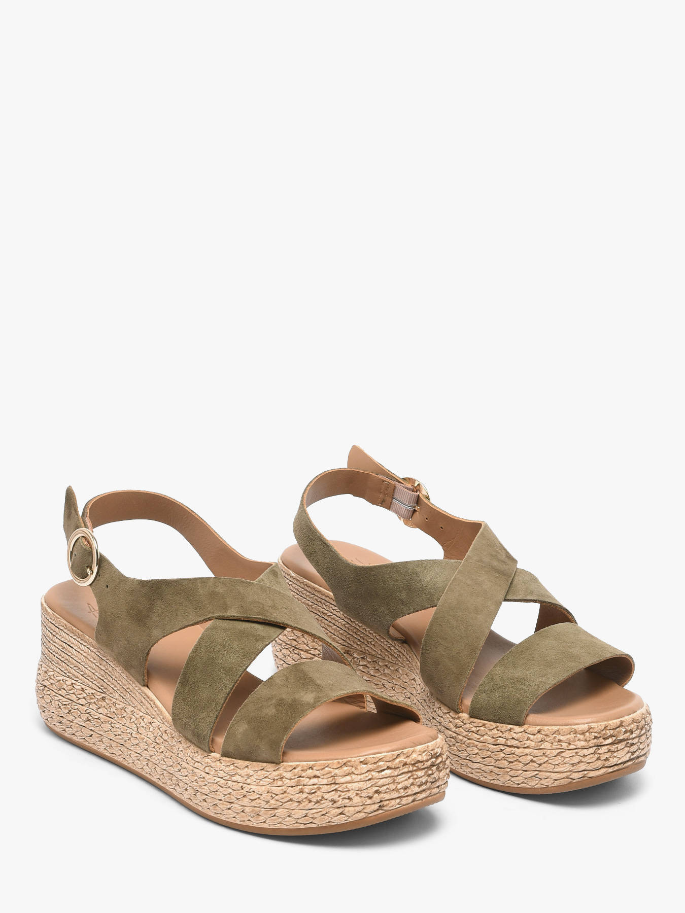 Embrace effortless summer elegance with ALIWELL wedge sandals, designed to combine comfort and femininity for everyday wear. Their 6.5 cm wedge heel provides excellent stability while naturally enhancing your silhouette. Presented in a trendy khaki shade, they easily match a wide range of summer outfits. The leather upper with a suede finish adds a soft and refined touch, perfect for a casual chic style. The leather lining and insole ensure long-lasting comfort and a pleasant walking experience with every step. Featuring a buckle closure, these sandals offer a secure and adjustable fit around the ankle. Ideal for the summer season, they can be worn from day to evening with ease. ALIWELL wedge sandals are the perfect choice to combine style, comfort, and natural elegance.