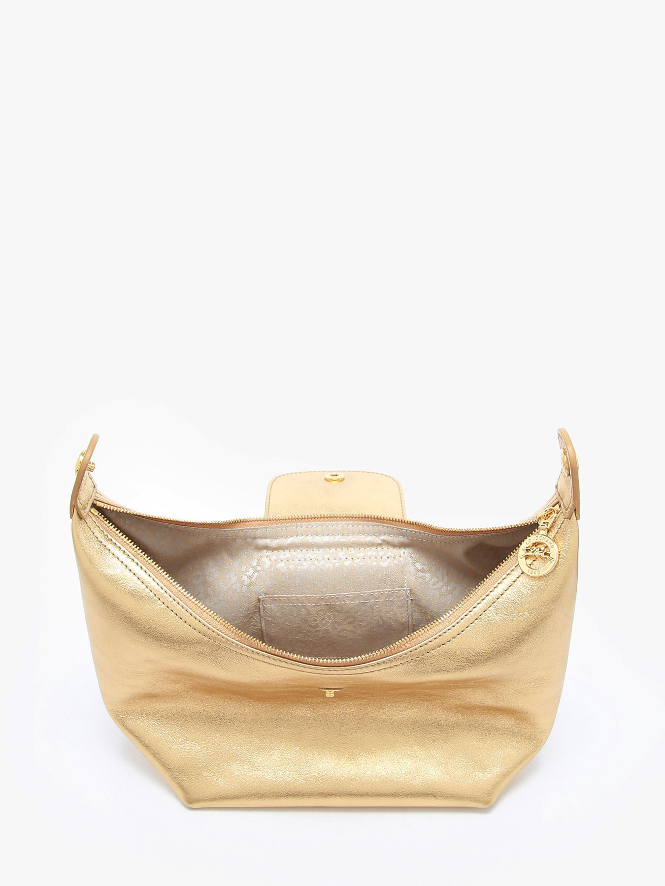 The Le Pliage Xtra handbag by LONGCHAMP, crafted from golden metallic calf leather, embodies chic and glamorous elegance perfect for evening occasions. Compact and radiant, it features a zip closure combined with a snap button for optimal security. Its thoughtfully designed interior includes a single compartment and a dedicated card slot, ideal for keeping essentials close at hand. Golden finishes and a shimmering texture add a festive and refined touch, making this bag a must-have accessory to brighten your evening looks. Designed for hand carry with a 7 cm handle, it combines practicality and sophistication in a compact format. True to the PLIAGE XTRA spirit, this model expresses confident elegance, blending simplicity and modernity to energize your urban daily life with style and character.